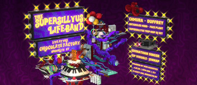Join us April 25 2026 for a shindig of shenanigans with musical guests Chmura, Duffrey, Entangled Mind, and Face Plant rocking a big honkin’ Void Acoustics rig and featuring a very special Trip-Hop Adventure Dj set from Supersillyus to kick off the evening.