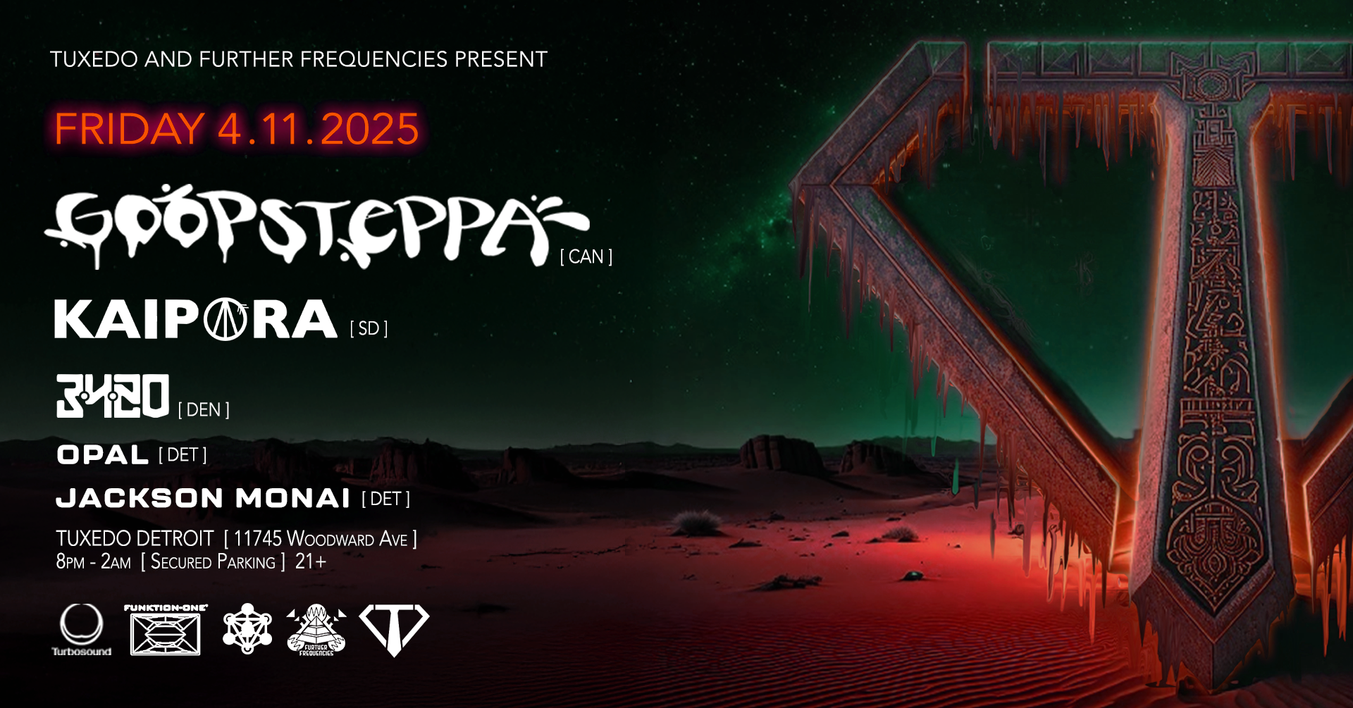 Tuxedo & Further Frequencies Presents: Goopsteppa w/ Kaipora, 3420, Opal, & Jackson Monai @ Tuxedo - Detroit, MI